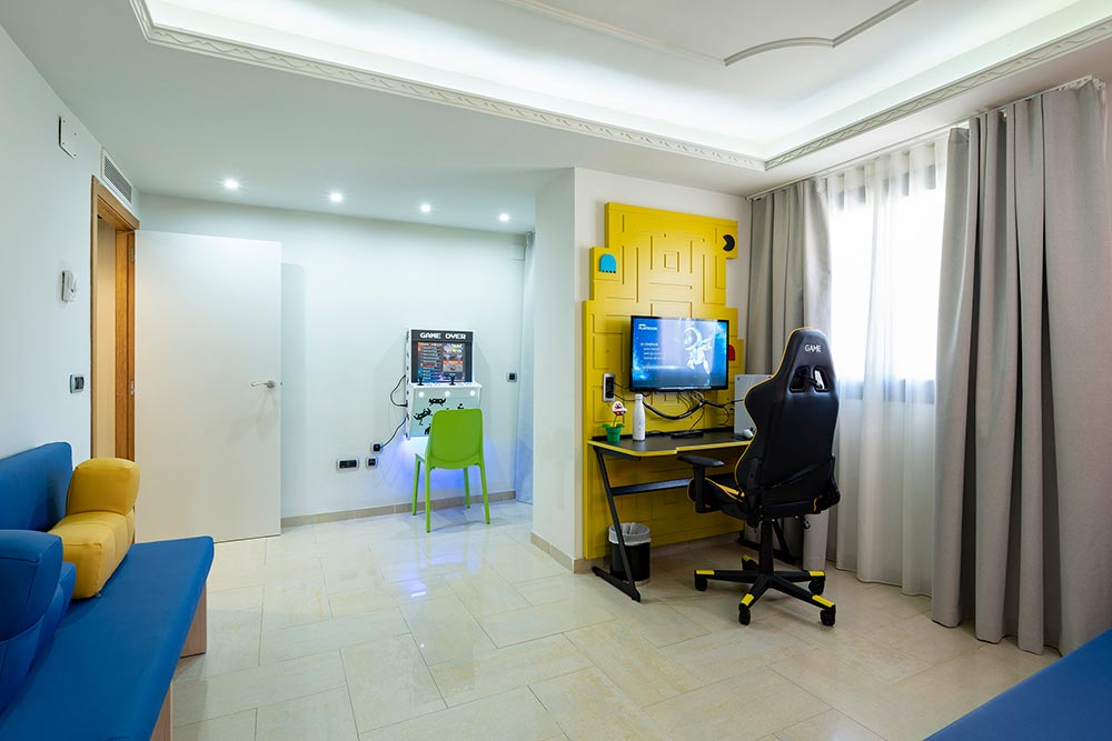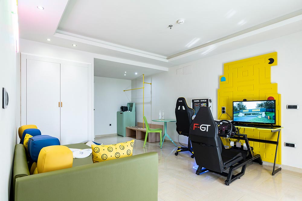 HABITACIONES: El Hotel Magic Games es un hotel único con temática gamer e inspirada en los juegos de mesa. ¡Jugamos juntos y nos divertimos juntos! Cuenta con habitaciones con capacidad para hasta 6 personas, algunas con sorpresas como recreativas arcade, realidad virtual, juegos de mesa y opción de vistas al mar.