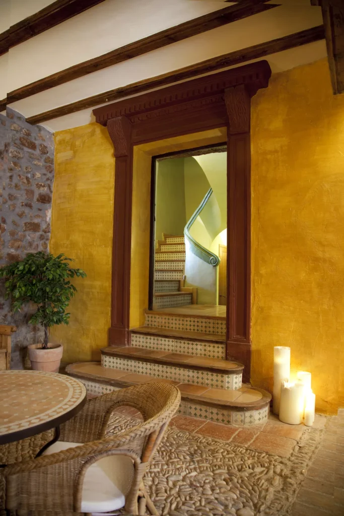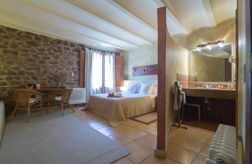 SITUACIÓN: El hotel rural Jardín Vertical está construido en una casa señorial del siglo XVII levantada con piedra roja de ródeno. Una enredadera cubre la altísima fachada de piedra de esta casa encantada, de aire medieval, que se alza ante un insólito paisaje.