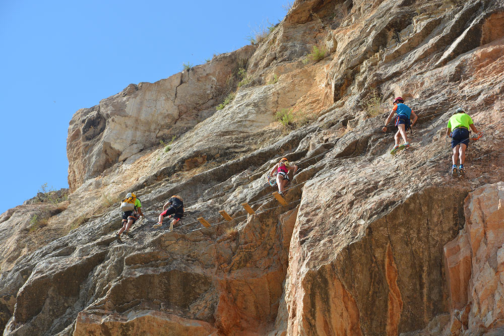 La vía ferrata “La Cantera” de la Vilavella es una vía ferrata semiurbana que con un recorrido de 130 metros dividido en 6 tramos que salvan un desnivel de 100 metros, ofrece unas vistas espectaculares de la población y los campos de cítricos típicos de esta área, con el mar Mediterráneo como telón de fondo. Durante el recorrido pasaremos por dos pequeños puentes y también se realizará un rapel. No es necesaria experiencia previa.